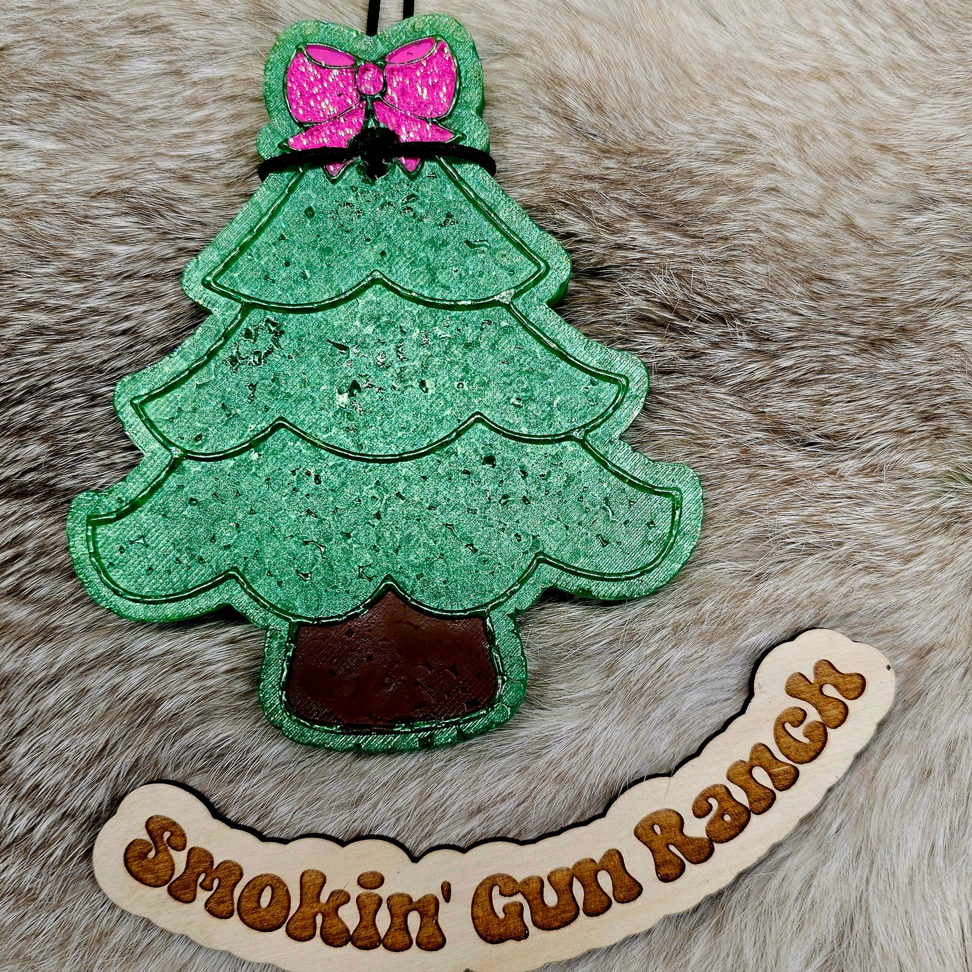This exquisite Christmas tree freshie is adorned with a luxurious bow and exudes a delightful aroma. Bring the festive spirit to your car with this elegant and fragrant decoration.