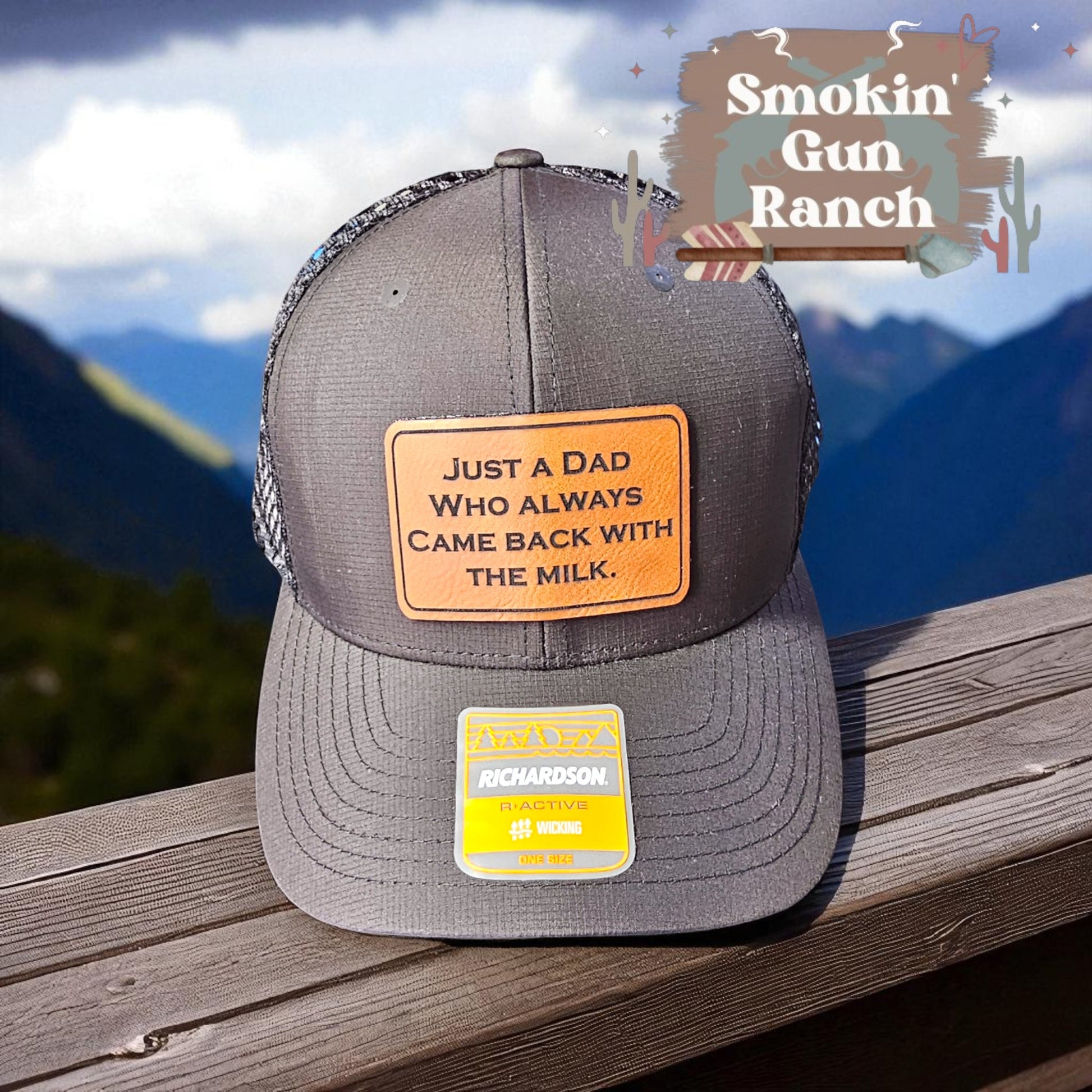 Just A Dad who always came back from with the Milk Leatherette Patch Hat
