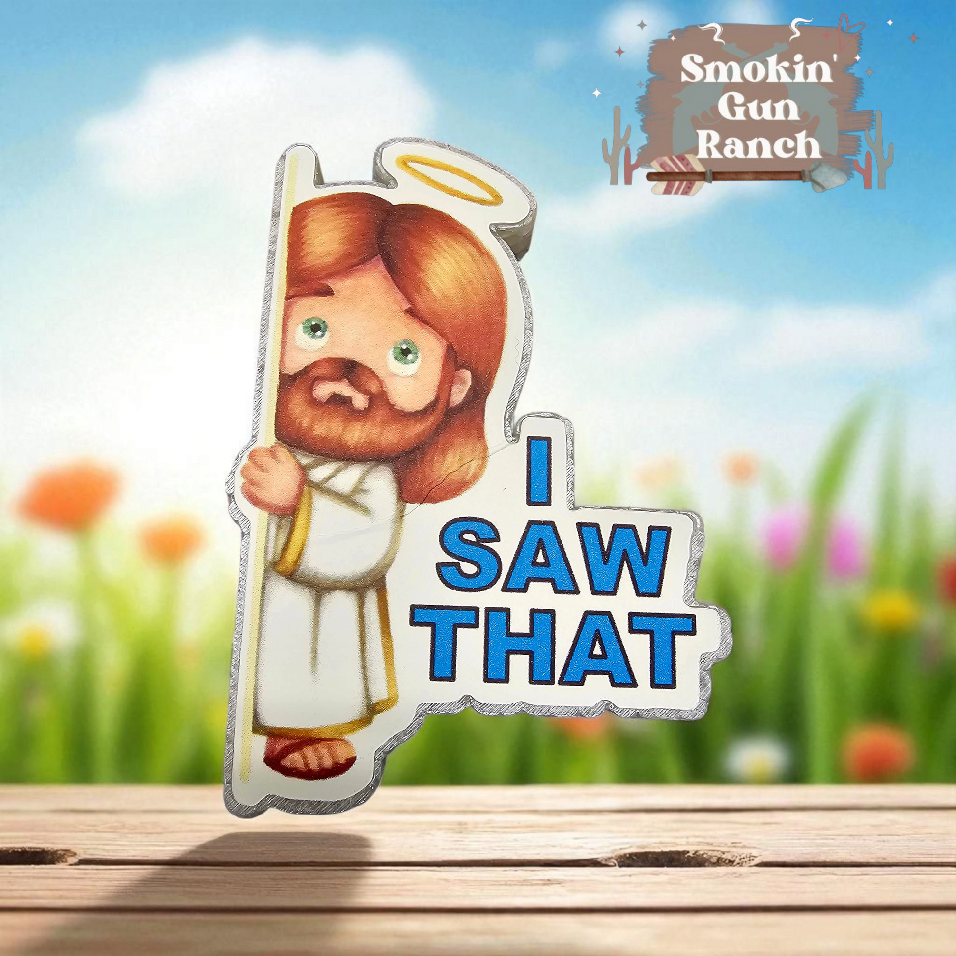 Are you feeling watched? With our "I saw that-cardstock Freshie," you'll have Jesus on your side, always watching out for you. This quirky cardstock is a playful reminder of a spiritual presence, keeping you on your toes!