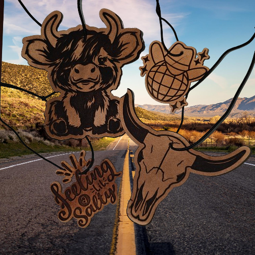 Upgrade your car or room with our Leather Patch Freshie! Made with genuine leather, this re-scent able air freshener comes with a spray fragrance included. You can also adjust the scent to your liking and even customize it for a personal touch. Elevate your space with this must-have accessory.